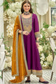 Purple, Gold, Orange Embroidered Kurta with Trousers & Dupatta
