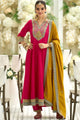 Pink, Green, Mustard Embroidered Kurta with Trousers & Dupatta