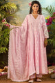 Pink & White Embroidered Kurta with Trousers & Dupatta