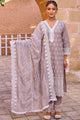 Grey & White Embroidered Kurta with Trousers & Dupatta