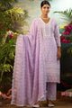 Lavender & White Embroidered Kurta with Trousers & Dupatta