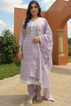 Lavender & Peach Embroidered Kurta with Trousers & Dupatta