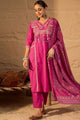 Pink & Beige Embroidered Kurta with Trousers & Dupatta
