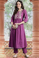 Purple embroidered Kurta with Trousers