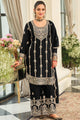 Black & Gold Embroidered Kurta with Palazzo & Dupatta