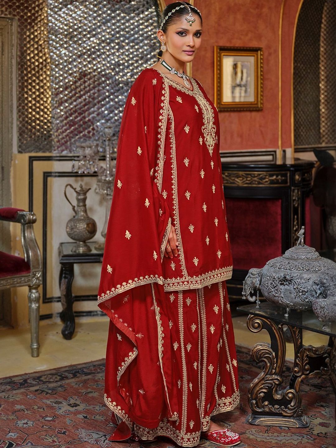 Red & Gold Embroidered Kurta with Sharara & Dupatta