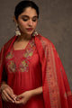 Red & Green Embroidered Kurta with Trousers & Dupatta