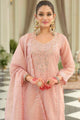 Peach & Blue Embroidered Kurta with Trousers & Dupatta
