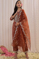 Brown & Silver Embroidered Kurta with Trousers & Dupatta