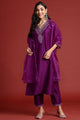 Purple & Gold Embroidered Kurta with Trousers & Dupatta