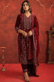 Maroon, Red, Gold Embroidered Kurta with Trousers & Dupatta