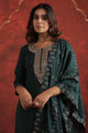 Green, Teal, Gold Embroidered Kurta with Trousers & Dupatta