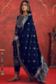 Navy Blue, Blue, Gold Embroidered Kurta with Trousers & Dupatta