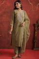 Olive green embroidered Kurta with Trousers with dupatta