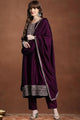 Purple embroidered Kurta with Trousers with dupatta