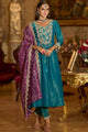 Dhiyona IE Women Ethnic Motifs Embroidered Regular A-Line Kurta with Trousers & Dupatta