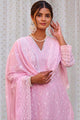 Dhiyona IE Women Ethnic Motifs Embroidered Regular Chikankari Pure Cotton Kurta with Trousers & With Dupatta