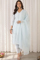 Dhiyona IE Women Ethnic Motifs Embroidered Regular Chikankari Pure Cotton Kurta with Trousers & With Dupatta