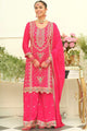 Pink embroidered Kurta with Palazzos with dupatta
