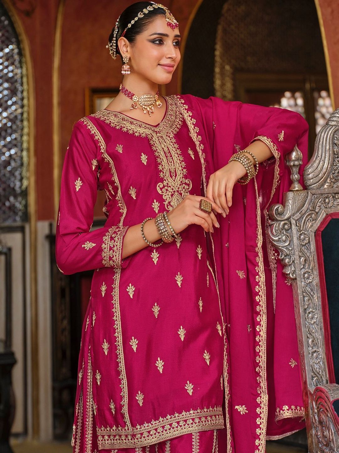 Fuchsia embroidered Kurta with Sharara with dupatta