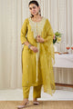 Olive green embroidered Kurta with Trousers with dupatta