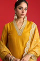 Mustard yellow embroidered Kurta with Trousers with dupatta