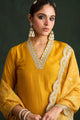 Mustard yellow embroidered Kurta with Trousers with dupatta