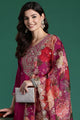 Burgundy embroidered Kurta with Trousers with dupatta