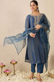 Blue embroidered Kurta with Trousers with dupatta