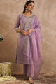 Lavender embroidered Kurta with Trousers with dupatta