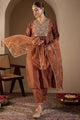 Dhiyona IE Women Ethnic Motifs Embroidered Regular Liva Kurta with Trousers & With Dupatta