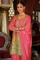 Peach-coloured embroidered Kurta with Palazzos with dupatta