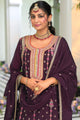 Burgundy embroidered Kurta with Palazzos with dupatta