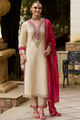 Cream-coloured embroidered Kurta with Trousers with dupatta