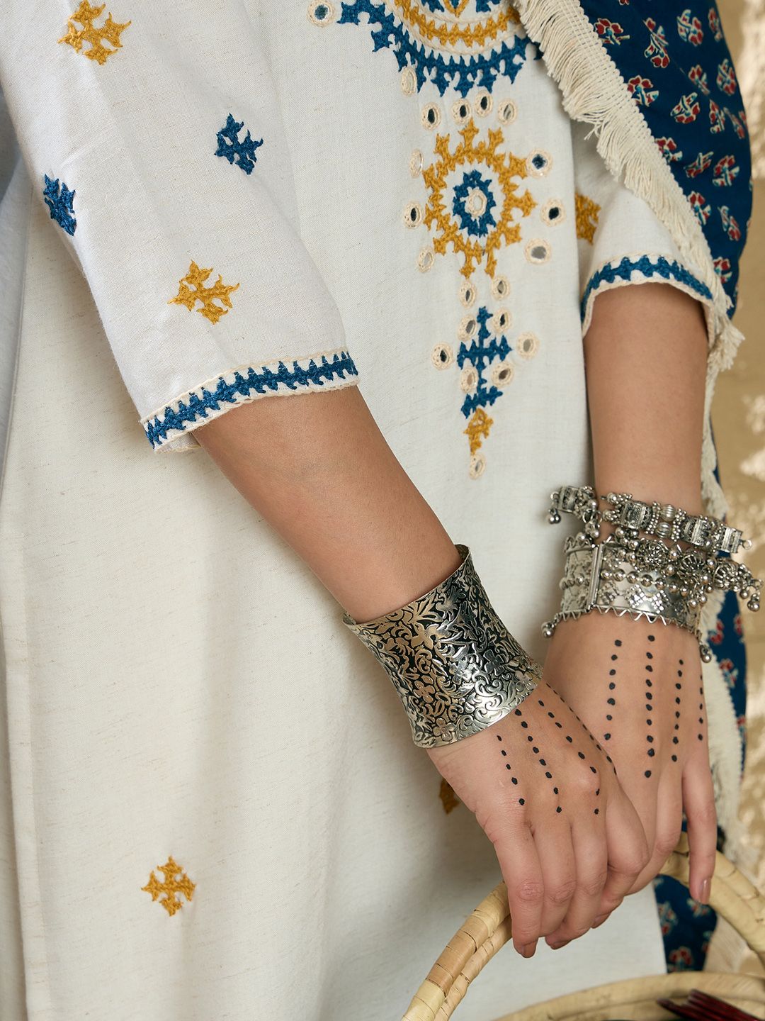 - Ethnic motifs embroidered