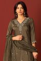 Green embroidered Kurta with Trousers with dupatta