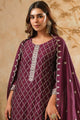 Burgundy embroidered Kurta with Trousers with dupatta