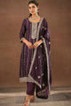 Purple embroidered Kurta with Trousers with dupatta