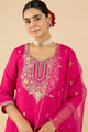 Magenta embroidered Kurta with Trousers with dupatta