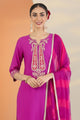 Fuchsia embroidered Kurta with Trousers with dupatta