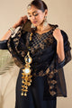 Navy blue embroidered Kurta with Trousers with dupatta