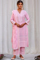 Pink embroidered Kurta with Trousers with dupatta
