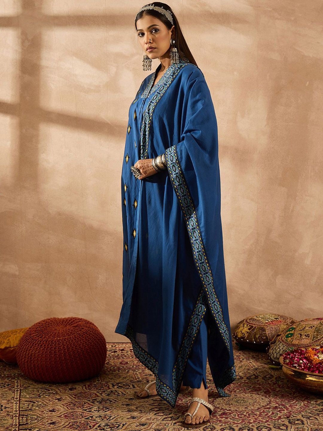 Dhiyona IE Women Ethnic Motifs Embroidered Regular Thread Work Pure Cotton Kurta with Trousers & With Dupatta
