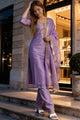 Lavender, white and yelllow embroidered kurta with trousers and dupatta