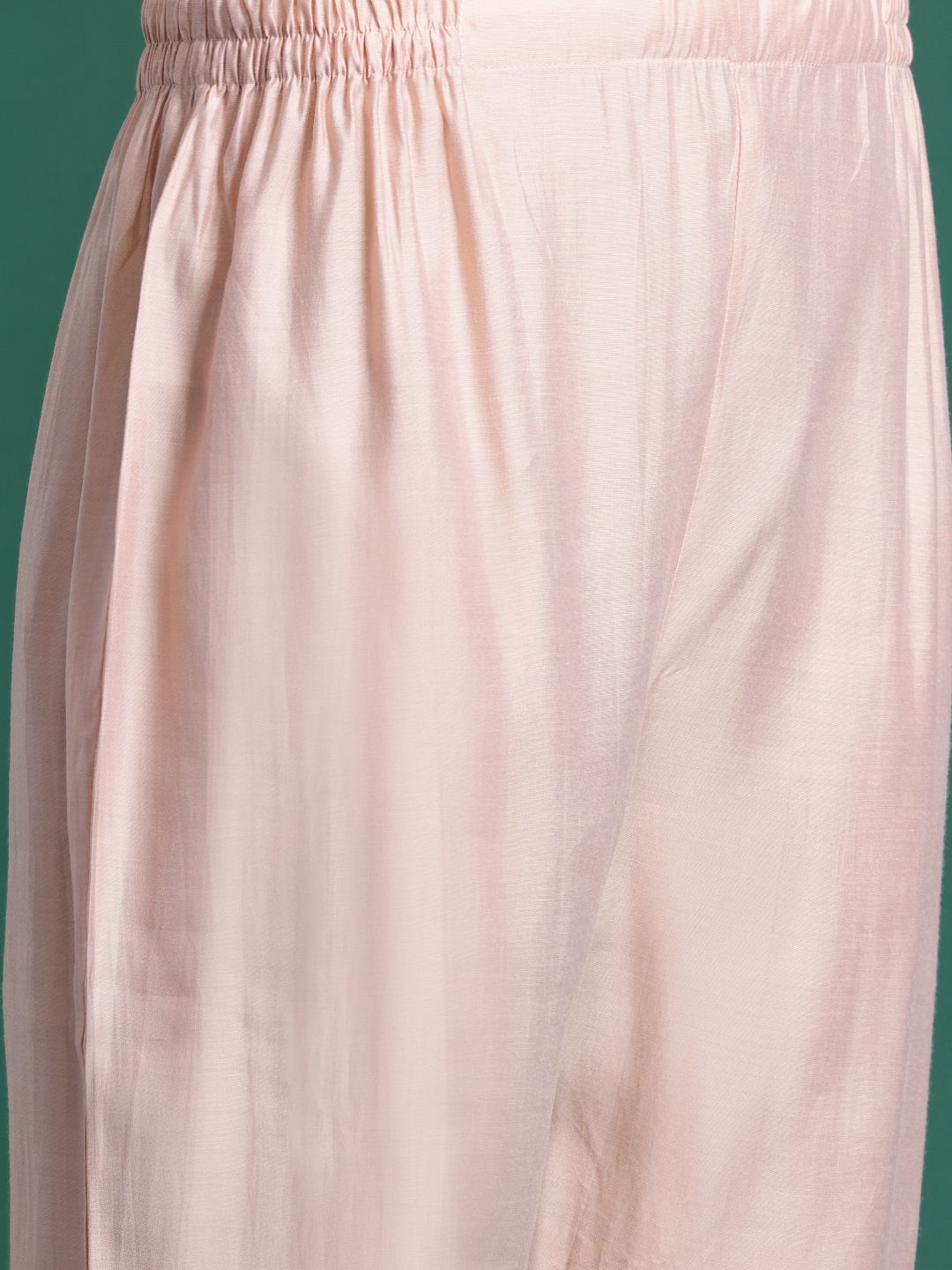 Peach-coloured embroidered Kurta with Trousers with dupatta