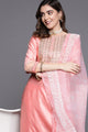 Pink embroidered Kurta with Palazzos with dupatta