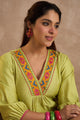 Dhiyona IE Women Ethnic Motifs Embroidered Thread Work Liva Kurta with Trousers