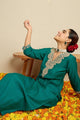 Dhiyona IE Women Ethnic Motifs Embroidered V-Neck Regular Sequinned Kurta with Trousers