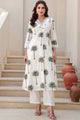 White & Green Printed Kurta with Trousers
