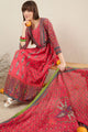 Red, White, Yellow Printed Kurta with Trousers & Dupatta